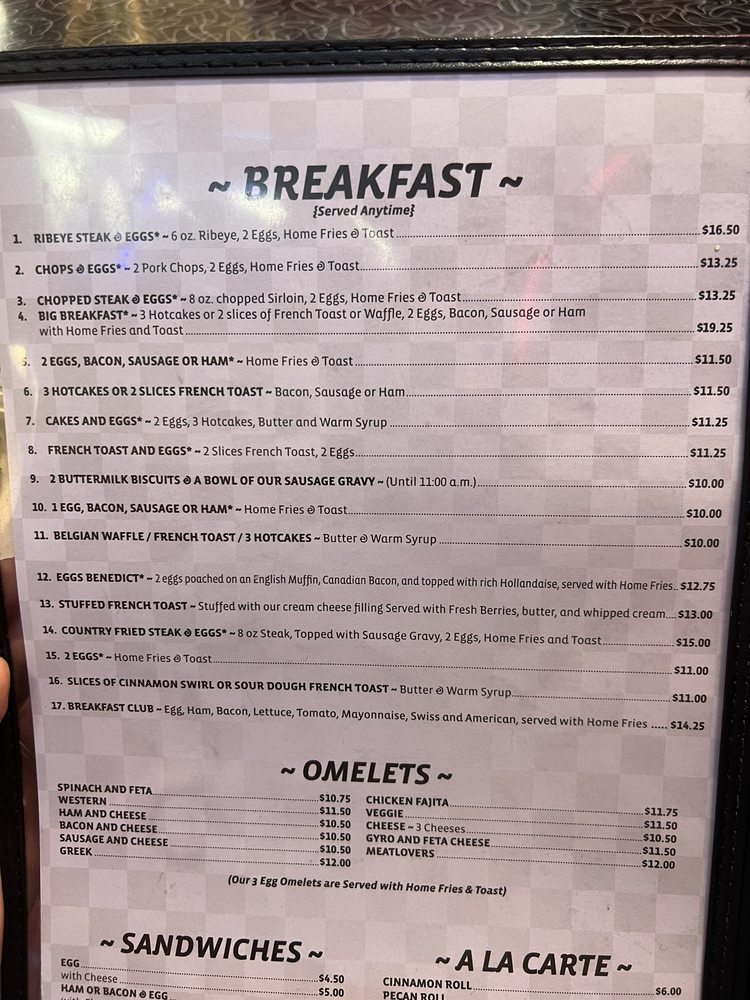 Tommy’s Diner, a classic diner located in Columbus, OH, offers a cozy and nostalgic ambiance with impeccable service. The menu features a vast selection of breakfast options, from Ribeye Steak & Eggs to Stuffed French Toast, catering to various tastes. Customers rave about the generous portions and delicious flavors, with standout dishes like the Eggs Benedict and the Country Fried Steak receiving high praise. The decor exudes a homey feel adorned with pictures and memorabilia, adding to the overall charm. Reviews highlight the friendly service and delightful dining experience, making it a must-visit spot for a satisfying meal. Whether you're craving a hearty breakfast or a comforting daily special, Tommy’s Diner promises a delightful dining experience with a touch of nostalgia.
